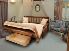 Other analogues can have a complex design, and therefore have their own gradation. Some of them are two-level type options. Outwardly, they can resemble bunk beds for children. The difference is the fact that on one level there is a bed with sides, on the other - a functional sofa. The design may include the sofa has built-in storage systems, which can be both small shelves and roomy lower boxes located under the seat. Depending on their size and quantity, you can store bedding or oversized items inside.