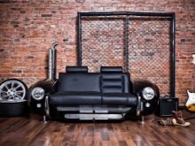 - Sofa for arranging the cottage, as a stylish element of the attic interior.
