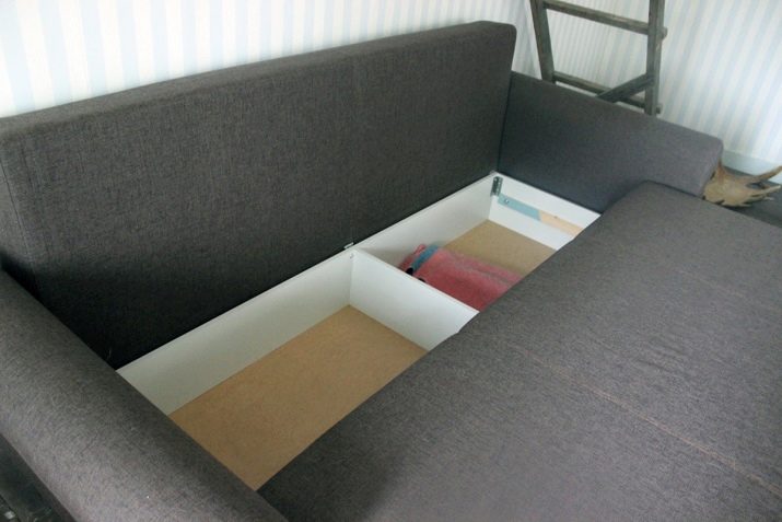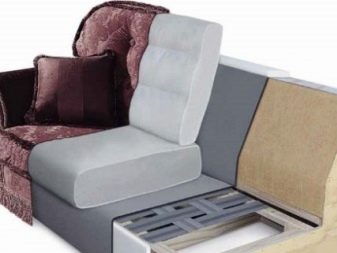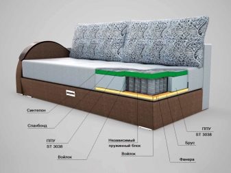 Boxes for storing bedding or bed units are made of plywood or wood derivatives. Transformation mechanisms are made of metal. There are also metal armrests, supports, as well as elements of the backs. The frame of models with a bar or table is made of wood. Armrests-racks or structures with folding shelves are made of plywood.