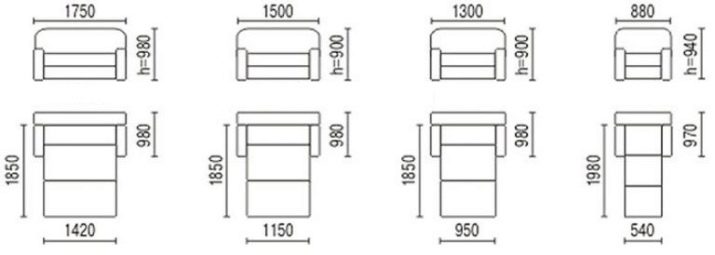 Such furniture is made for adults and children. In view of this, the length of her berth can be from 150 to 180 cm. Products for adults are slightly larger: the dimensions of such a sleeping unit can be from 180 to 200-210 cm in length. Among these products there are also options with narrow seats, the width of which is assembled form does not exceed 45 cm.