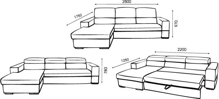 In addition, on sale you can find products with bed parameters equal to 160x200, 120x200, 140x200, 180x200, 200x200 cm. Dimensions of large sofas can be 230, 300, 310, 290 cm in length. The width of the berth for these modifications varies, it varies from 140 to 160-170 cm. The height of the product, together with the back, often exceeds 85 cm, reaches 95-100 cm. The average height of the armrests is 60 cm.
