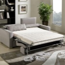 Some versions are equipped with a topper., that is, a medium-sized auxiliary mattress. It allows you to more accurately adjust the rigidity of the furniture. But sofas with orthopedic mattresses have a weak point: they will have to be assembled and disassembled every day. At the same time, it is also laid out additionally (bedding is removed). Toppers help to remove the joint that occurs when unfolded, however, they must be bought separately, and such mattresses hardly affect the wear of mechanisms.