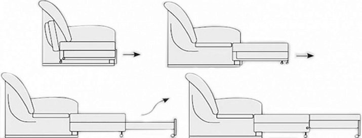 "American clamshell" consists of three sections. For layout, pull the seat. Following it, all sections are opened and mounted on the supports themselves. It is only necessary to take into account that each section requires a separate layout. “Sedaflex”, as this type is sometimes called: