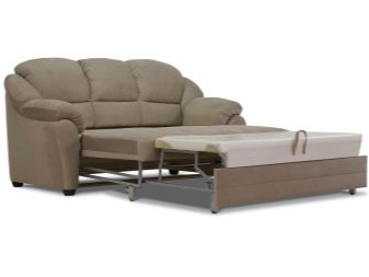 An example of such a mechanism is the model of the Rook factory under the name Vityaz. This is a straight sofa with fabric upholstery, equipped with a “roll-out book” mechanism. The features of this sofa are a wooden frame made of hardwood, filler with Bonnel dependent spring block with layers of polyurethane foam, elegant wooden armrests with chrome elements. And also the opportunity to choose upholstery fabric to your liking.