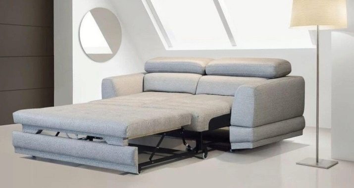 Such mechanisms are often mounted on corner sofas, the principle of operation is similar to a dolphin jump: the module hidden under the long part of the seat slides forward smoothly, after which it rises up on the supports, becoming flush with the main surface of the sofa. The disadvantage of this design in its some complexity and low wear resistance due to additional parts of the mechanism.