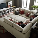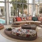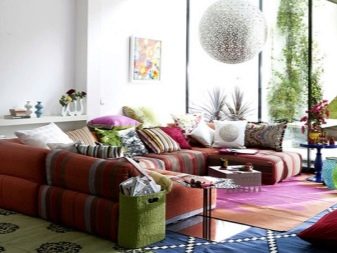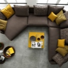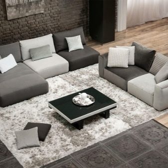 It is recommended to install island compound sofas from pillow modules in the center of the room. Thus, such furniture becomes the central composition in the whole room. Island sofas can be of very different shapes: rectangular, round, radius, oval. They are not suitable for small premises.