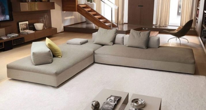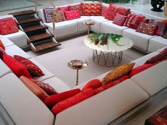 Such modifications of modular sofas are most often installed in large rooms and are formed from ottomans. In no case can they be frameless. On this sofa you can organize a sleeping area.