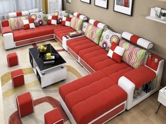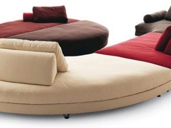 These sofas should be strong enough, so most often they are made on the basis of a metal frame with armrests. They are designed for large families. Designs can be installed in living rooms and at the same time accommodate a large number of people. For greater comfort, they can be assembled from poufs.