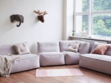The choice and placement of a modular sofa in the living room depends on the particular perspective of a particular room. If there is a bay window in it, you need to put the sofa in the bay window space. In this case, you need to choose the option whose shape is suitable for the shape of the bay window itself. The type of transformation in this case should include a forward layout.