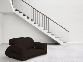 - by material of execution - here, too, everything is very diverse: there are products with glass inserts, wooden bas-reliefs, metal forged parts, curved plastic, a hard seat or, conversely, assuming the shape of a person sitting on it, there are even eco-models made of paper egg packaging.