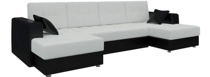 - "Emir." This model has a long length - over three meters, as well as various color schemes. The most popular is the contrast, black and white upholstery. The sofa is three-section, equipped with spring blocks. On the "Emir" can comfortably accommodate 4 people at a time.