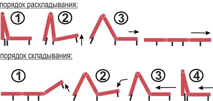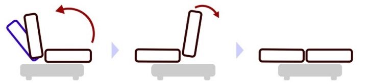 Accordion. To turn a single sofa into a bed, you should raise the edge of the structure until it clicks and push it forward.