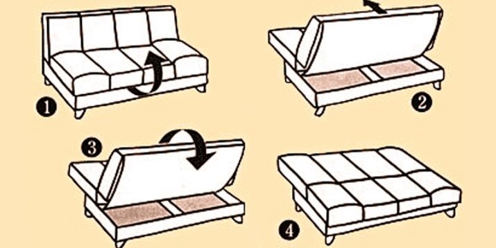 - "Book". It is a common type of folding mechanism, which is characterized by reliability and ease of use. To arrange a berth, it is necessary to raise the structure and transfer it to the position indicated by the manufacturer for each model separately. This will be followed by snap joints.