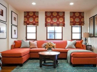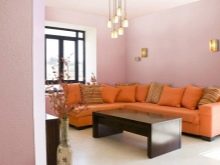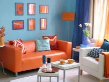 It has already been mentioned that in an environment it is important to avoid redundancy of the color presented. therefore a sofa in a saturated color is best placed in a room made in a neutral color. If the room is decorated in bright colors, then, on the contrary, it is better to choose a sofa in a calmer color scheme, for example, warm apricot or dark terracotta. Beautiful combinations are obtained from orange with light wood, and combinations with metal look no less advantageous, for example, when decorating a room in the style of minimalism.
