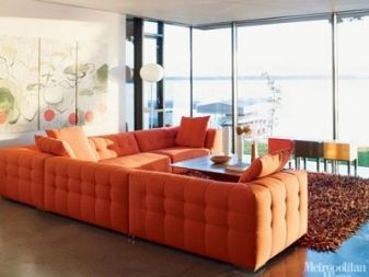 Orange sofas can be offered in various variations. This piece of furniture can be divided into types.