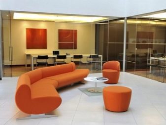 When choosing colors, note that orange is in harmony with deep purple, green and turquoise tones. Beautiful interior compositions can be created by combining an orange sofa with light pastel. If you need to design an office, then, of course, the orange-purple sofa will look tasteless, but if you complement this design of upholstered furniture with white or blue decorations, the office will again be filled with a business atmosphere.