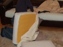 Quite often, the reason for the appearance of pits on the couch lies in the damaged spring block. In this case, clean the upholstery as carefully as possible so as not to spoil it.