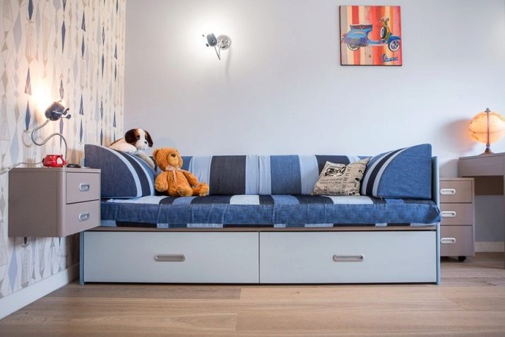 - In children's rooms it is better to choose natural fillers - latex, coconut coir, as well as natural upholstery made of cotton-based fabric with 5-6 pillows.
