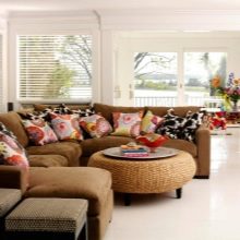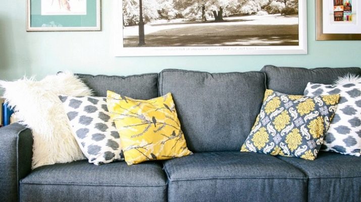 - If you want the eye to rest on the sofa area, pick up pillows that are close in tone, but with an original ornament.