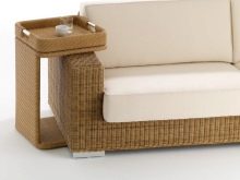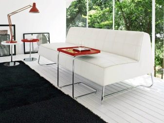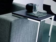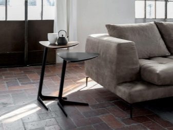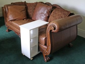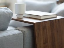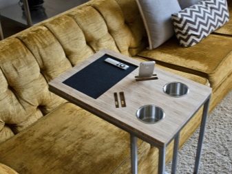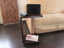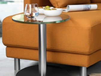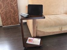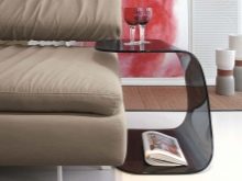 It must be reliable. Those options in which the tabletop lies directly on the armrest, perhaps, can be considered the most practical. They are stable, occupy a minimum of space, look very organically in the community with the sofa. If the roll-out table (or, in principle, is an addition to the sofa that comes with it), its fastening mechanism is reliable and durable. Most tables do without any fixation.