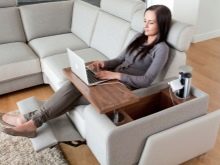 - Retractable. If you move it to the sofa, they become one. Outside the sofa, such a table can look like a heap and be completely invisible in the interior.