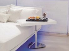- Table stand. So called devices similar to a tray with legs. On such a table you can have breakfast without getting up from a sofa or bed, some options of this accessory are used as a computer stand.
