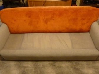 - If you have problems with the filler, but the upholstery of the sofa is in perfect order, it is necessary to carefully remove it and, changing the internal contents, re-secure it to the back.