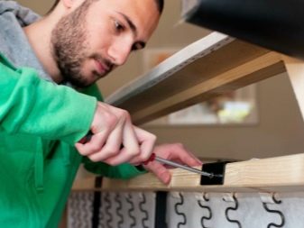 Furniture restoration always begins with disassembly. This means that you need to unscrew and remove the locks, unfasten the old brackets that previously mounted the upholstery on the frame. At this moment, keep nearby garbage bags, so as not to waste time later on cleaning the room.