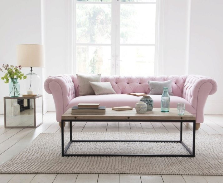 The pink sofa in the interior looks quite bold and original. Shades of pink are able to form a special mood in the room - both elaborately provocative and elegantly restrained. A lot depends on the shade, style. The range of sofas in this gamut is quite wide today, you can choose options for the most demanding taste, exclusive design. A pink sofa will look equally luxurious in a flirty romantic style and chic, respectable and expensive art deco.