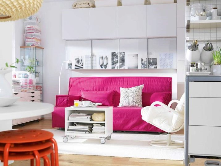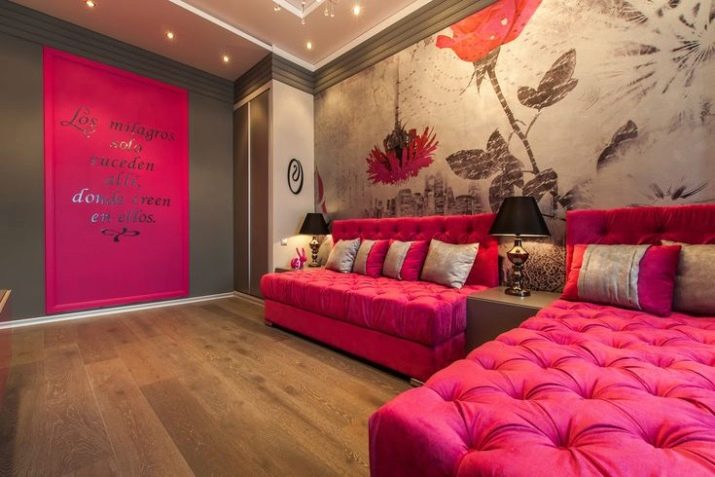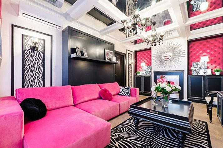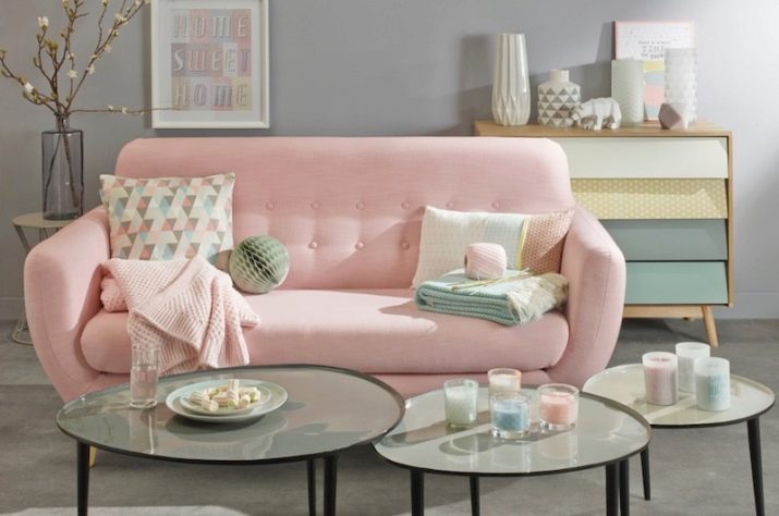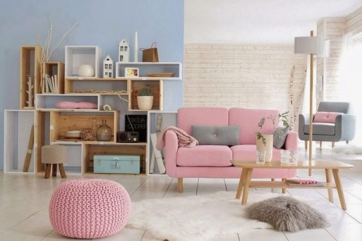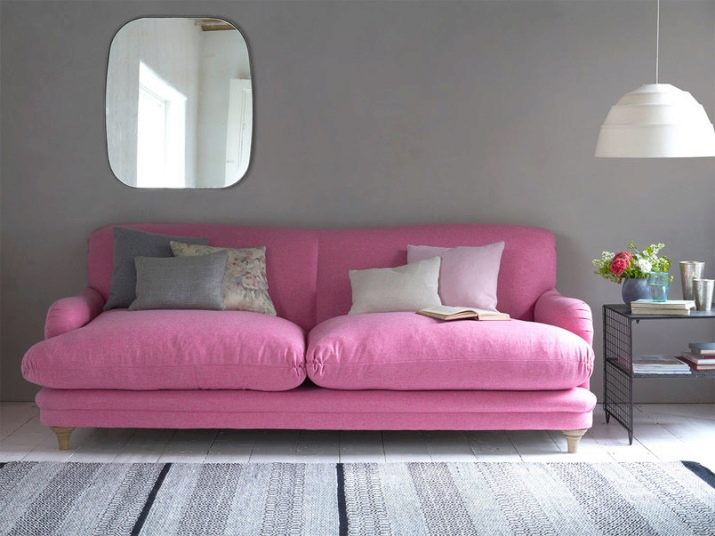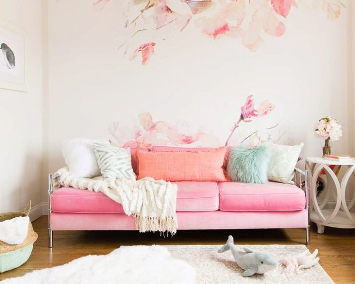 It doesn’t matter whether the sofa is the only pink accent or not. In any case, the interior will already be fascinating and interesting. There are a lot of shades of pink, all of them can harmoniously fit into the interior - from pastel tenderness to catchy fuchsia. With juicy tones, however, care must be taken, bright spots can adversely affect the psychological state, and irritate.