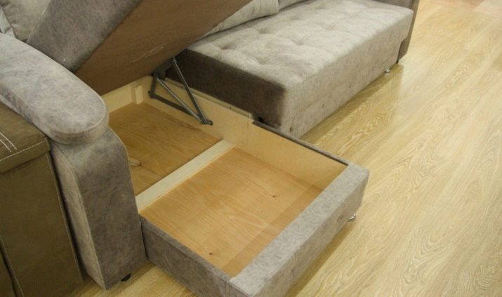 "Dolphin" - on the contrary, the mechanism is old. The transformation of the sofa into a bed occurs in a two-stage way. First, an extra berth is pulled out from under the seat, and then by means of hinges or other methods of gripping it is raised to the same level as the seat. There are either no storage boxes for sleeping accessories in such sofas, or they are in the ottoman.