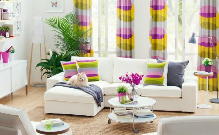 Light sofas look good indoors with dark floor and walls. They will create the necessary color accent and give lightness to the interior. It may be interesting to purchase a sofa and curtains of one extraordinary color, for example, mint, turquoise, lemon or pistachio. Then you can get a modern interior in a Mediterranean style.