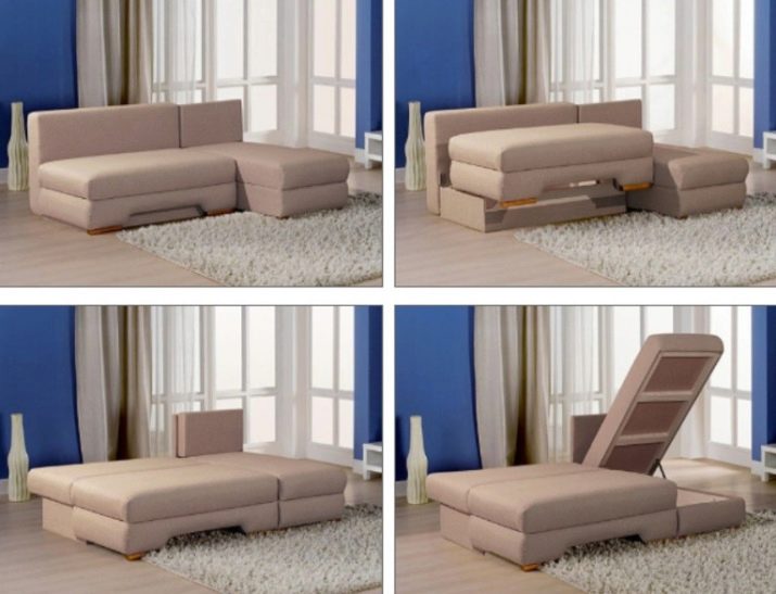 - Folding constructions can only be used as sofas. They are placed most often in the living room or large spacious hallway.