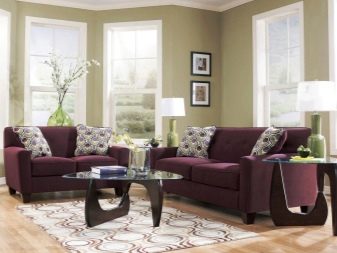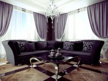 Living rooms are advised to place sofas in darker shades of purple. Often they act as additions in the classical style. In this case, the wallpaper in the room should be light (white, light gray, beige), although sometimes in such rooms make a brighter wall covering (green, blue).