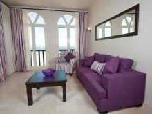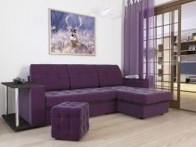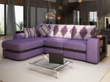 For the interior in bright colors with a large number of objects made of wood, a purple corner sofa can come up.