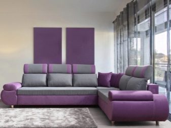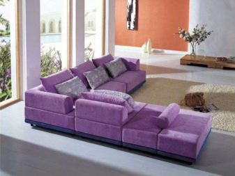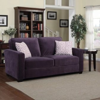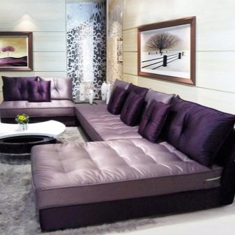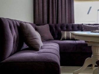 Sofas in dark purple will be suitable for living rooms. They will become an unusual and expressive accent. Brown-violet shades are best chosen for modern styles, for lofts.