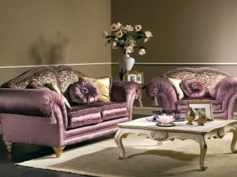 The upholstery could be the original in lilac-gold tones. Such colors will help make the design more comfortable and warm. Most often, elements of a golden or copper shade are added to the lilac fabric in the form of various decorative patterns.