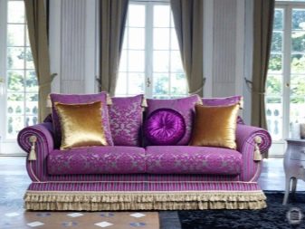 Another good option could be light lilac sofa with patterns in dark purple or navy blue. Such pieces of furniture are best placed in bright modern styles. For the classic type of design, they should not be selected.