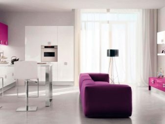 For bedrooms or for kitchens it is better to choose small sofas of light lilac, white and lilac tones. Such pieces of furniture will not overload and stand out strongly. For designs in white colors, you can choose darker options to dilute the interior and not make it too boring.