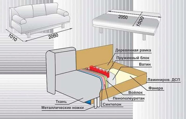 The design of the sofa is a fairly complex mechanism in which various elements are present.