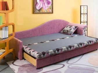 - Sliding - the transformation is carried out by pulling the lower beam of the seat. The structure is extended with the help of special metal elements mounted in the form of an accordion on both sides of the frame. After the extension, the seat becomes supported, and the backrest lowers, forming a berth.