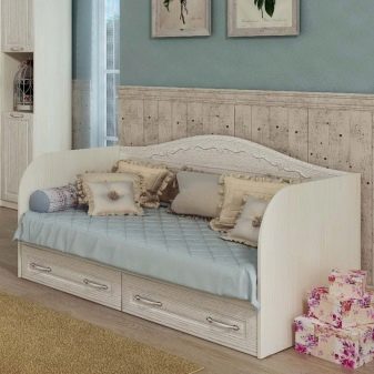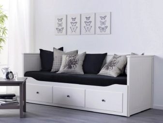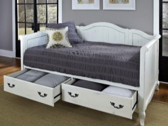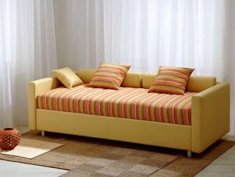 For children's rooms, it is recommended to choose squat models, where a low back and armrests perform only a restraining function - so that the child does not fall during sleep. Custom-designed sofa with storage box for large rooms - halls, living rooms, where its dimensions will not interfere with the movement of people. In the bedrooms, folding models are installed without a back and armrests - when unfolded, the sofa even visually replaces an ordinary sleeping bed.
