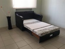 - a sofa with a berth of three sections and a rectangular table;