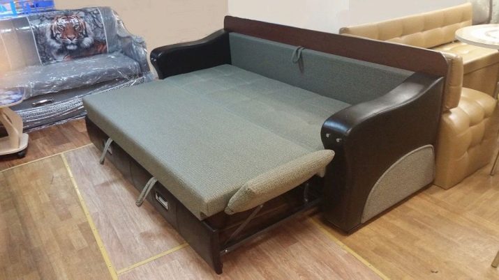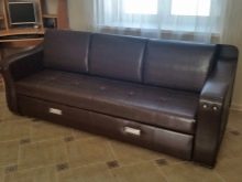 In the manufacture of upholstered furniture of the transformable type, different raw materials are used. More often the frame is made from good grades of wood. Fasteners make from metal. Budget options are produced using wood processing products. However, models made of thick plywood, particleboard and MDF are not particularly durable.