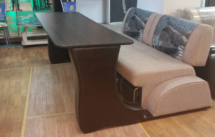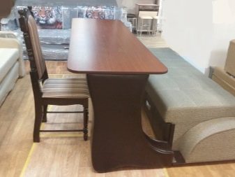 Such furniture is suitable for students and schoolchildren. Other modifications are equipped with additional functionality. The presence of storage systems makes them more useful for the arrangement of rooms. At the same time, you can set up a sofa table not only in the kitchen. It is appropriate in rooms of the combined type (for example, kitchen-living rooms), it becomes an decoration of the interior of dwellings with an open studio layout.