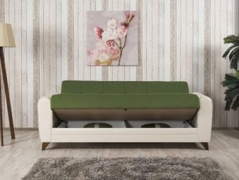 Transforming sofas, as already clear, can have a variety of types of design. But their main part is still not assembled from finished parts, but is converted using special devices. Often the folding mechanism is done using twisted spring.