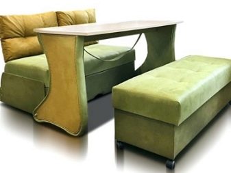 Models like “four in one” most often, along with a folding two-mode sofa allow you to use a table and a bench (padded stool). The result is a complete set of furniture for a small dining area. Such a product will suit the owners of studio apartments. But to talk a lot about such designs does not make sense.