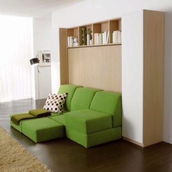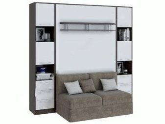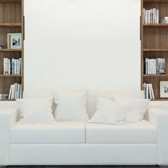 Vertical transforming sofas (like horizontal models) are arranged relatively simply and do not cause problems when used. They include a chest of drawers, a wardrobe, a table (optionally, instead of a table, there may be something else). Swivel performance is much less common. It allows you to save a lot of useful space in the house. However, this solution is quite expensive.