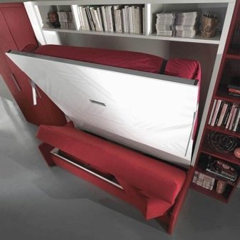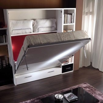 The three-in-one design implies the presence of not only a built-in bed, but also a cabinet, most often in the wall version. This wall should not be confused with old-fashioned solutions of the same name, which were actively released several decades ago. This is a completely different product, primarily in terms of construction quality. Important! 3 in 1 models only seem very complicated - in fact, they are already actively made not only by factories, but also by individual craftsmen in home workshops.