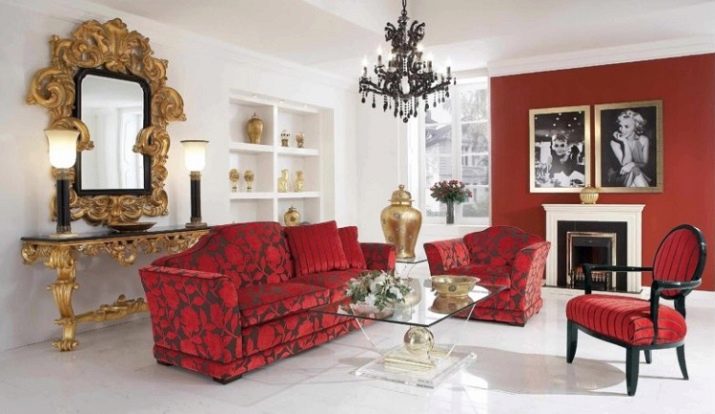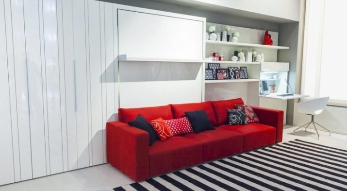 The option of using a bright red sofa-transformer in the interior is also possible. The colorful pillows laid on it look extravagant. The rest of the room allows you to pay off the excessive emotionality of this color.